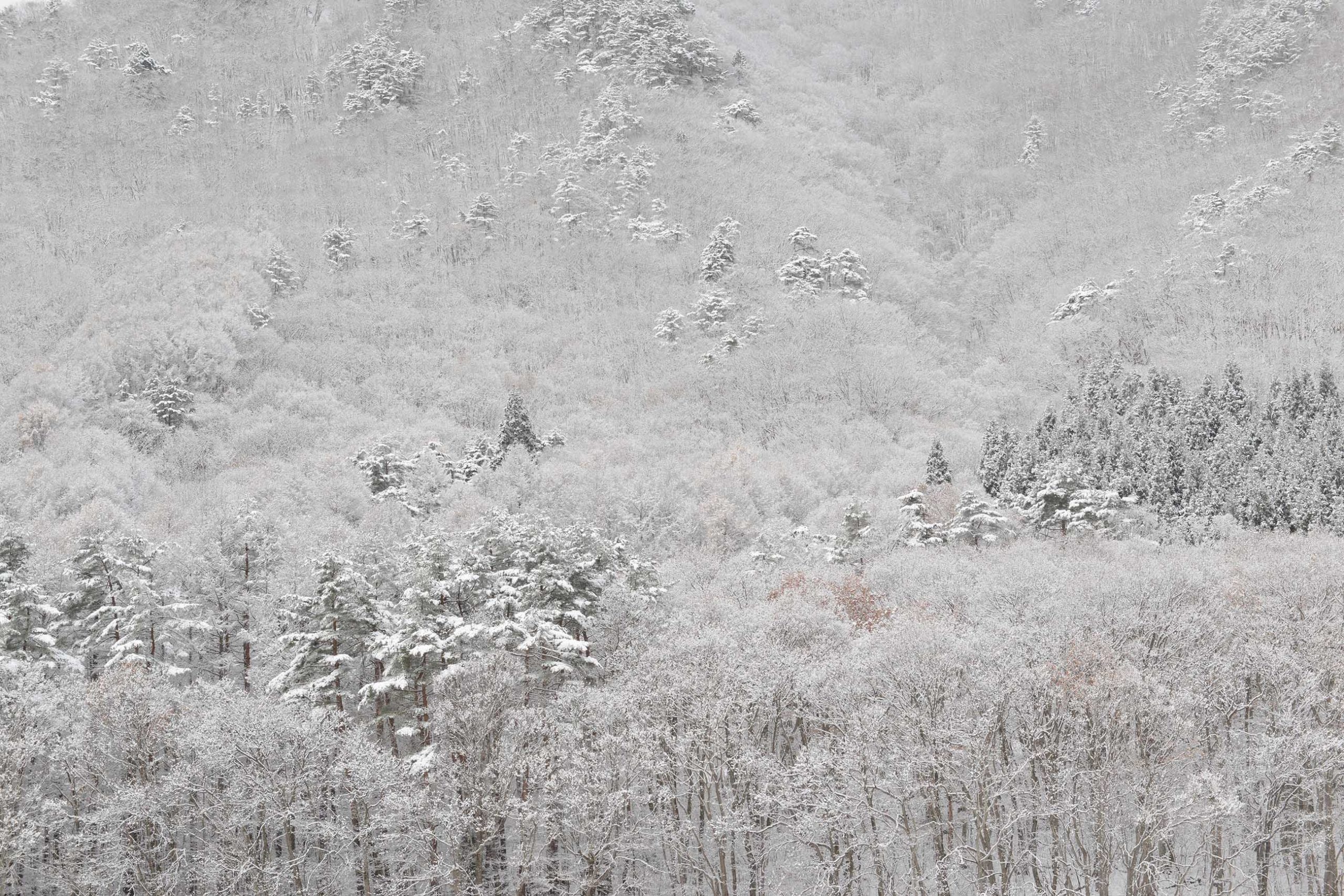 「多様な木々が一つの山をつくっている。」かつてノルウェーのアーティストが日本の山を見て言った。雑多な木々の生える山を雪の「白さ」という単一性が覆うことによって、木々のパッチワーク状で様々な「白」の濃度が立ち上がってくる。「白」という色はあらゆるものを支える下地であり、スクリーンであり、膜である。あらゆる視覚的「出来事」は無限の光の震えを縮約する<白の切断面>に投影された明滅する結像の力学によって生み出され、それは無数の微小な雪片(白の微粒子)によってひとつの平面が生み出されることによって可能となる。「アラベスク」とは生成の力学のダイアグラムであり、植物のリズムであり、その見えない気息の痕跡である。重要なのは植物の力能を白の静謐な「弱さ」を後背に知覚することであり、幽微な「白」のゆらぎをその多と一のはざまにおいて眼差すことである。